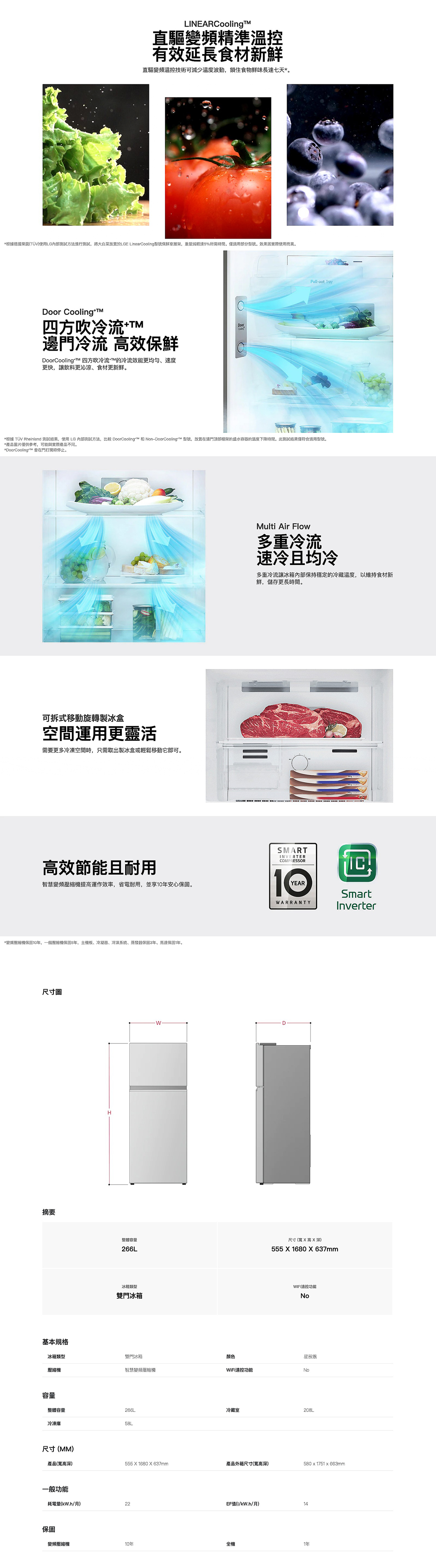 | 冰箱/LG GV-L266SV 266L 雙門直驅變頻冰箱 星辰銀 一級能效 |